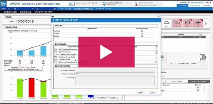 AVEVATM Discrete Lean Management provides a set of digital tools to help your business quickly adopt industry standard Lean practices to reduce production losses and to continuously improve discrete production line effectiveness.